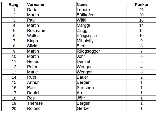 - Das Ranglistenturnier (Pyramide) zählt ebenfalls zur Jahresmeisterschaft (es müssen mind. 3 Partien im Jahr gespielt werden damit die Punkte zur Jahresmeisterschaft angerechnet werden)